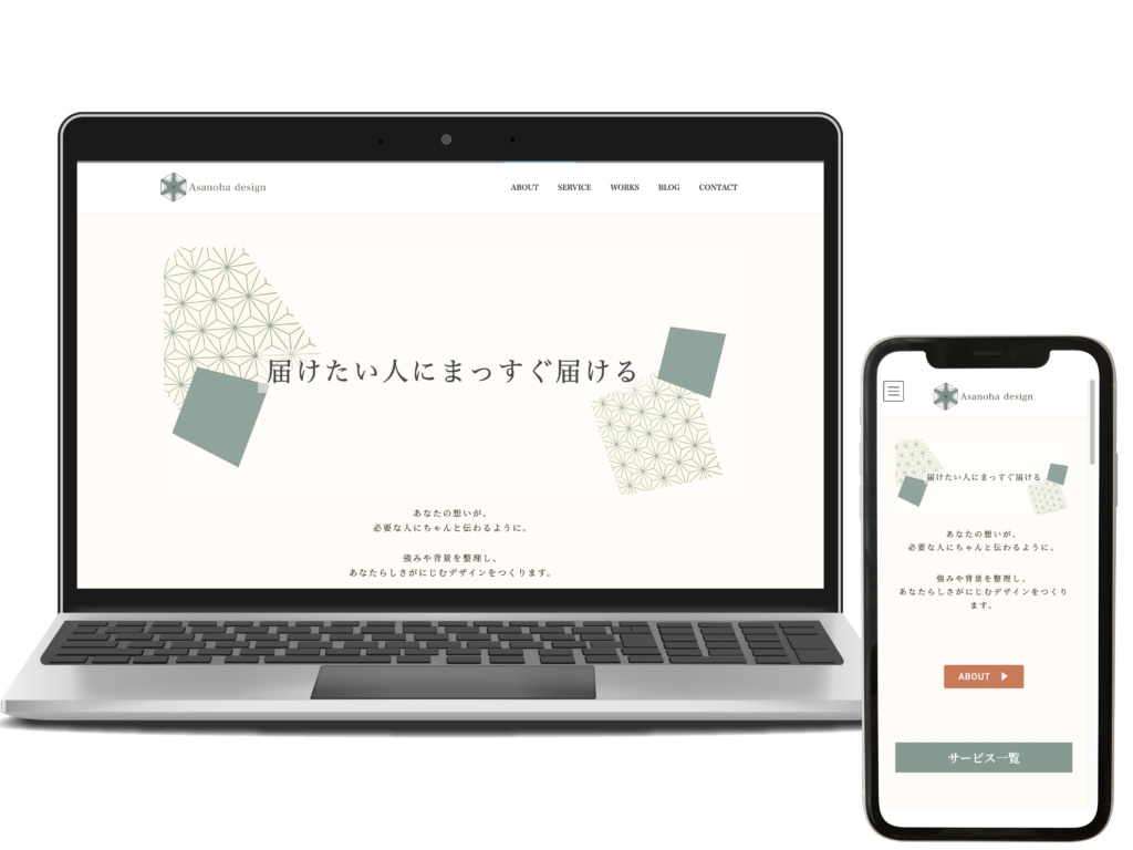 余白を活かしたレイアウトと、やわらかな色合いで安心感と誠実さが伝わる世界観を構築。情報量は絞りながらも、サービス内容や想いが自然と理解できる構成にこだわりました。