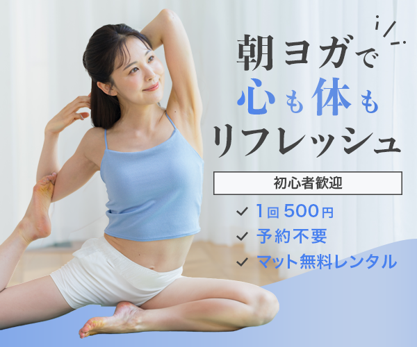 ヨガのサンプルバナーを制作しました。20〜30代女性を想定し、爽やかで清潔感のある配色と安心感のあるレイアウトを意識しました。「初心者歓迎」というハードルを下げる要素を視認性高く配置しています。不安を軽減し、参加の心理的ハードルを下げることで、「ちょっと行ってみようかな」と思える設計にしています。体験予約や来店につながることを目的としたデザインです。